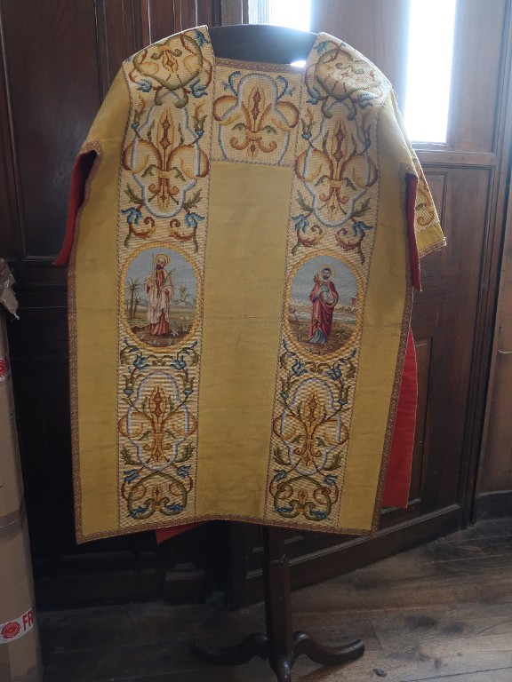 Ensemble d'ornements au petit point : une chape, deux dalmatiques et un voile huméral, basilique Notre-Dame-d'Espérance (Saint-Brieuc),
