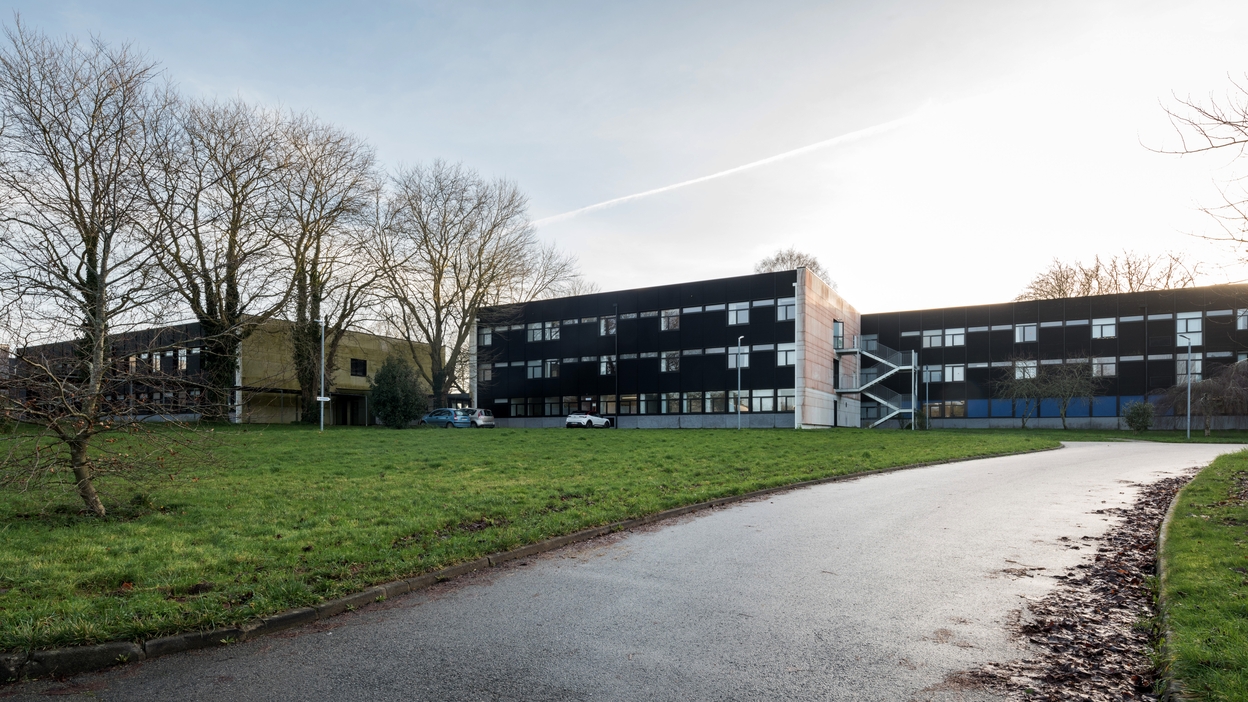 Façades sud-est des internats construits en 1967 (Dhuit, Dondel et De Jaegher, architectes) et restaurés en 2018 (Compère et Cie, architectes).Immatriculation