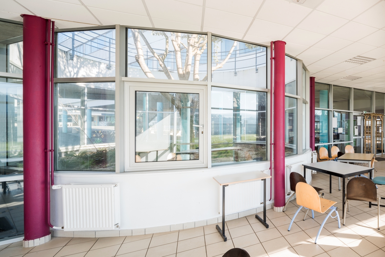 Hall de l'externat de 2001 (P. Ruelland et M. Quéré, architectes).Immatriculation