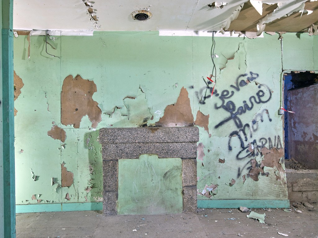 Vue d'une cheminée en place à l'extrémité nord du rez-de-chaussée, côté est (troisième travée depuis le nord)Immatriculation