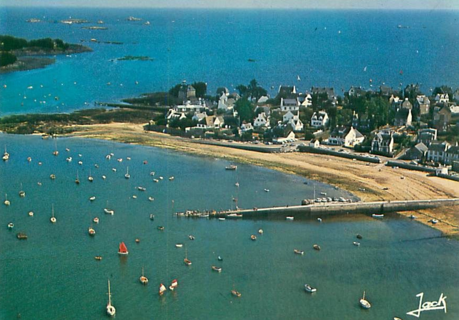 Vue aérienne oblique du Port de Carantec, carte postale, éditions JackImmatriculation