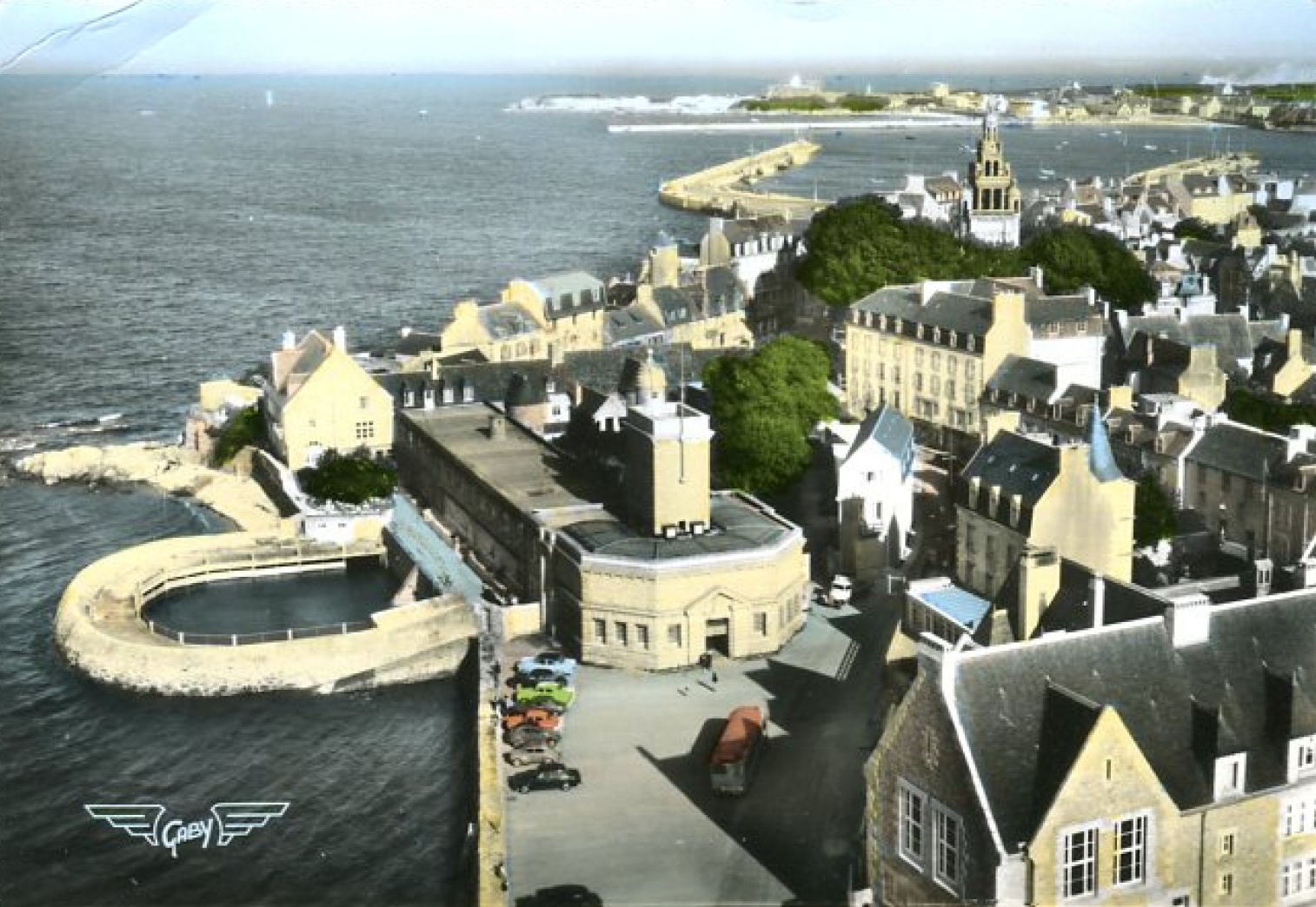 Vue aérienne oblique de la Station biologique de Roscoff, carte postale colorisée (éditions Gaby)Immatriculation