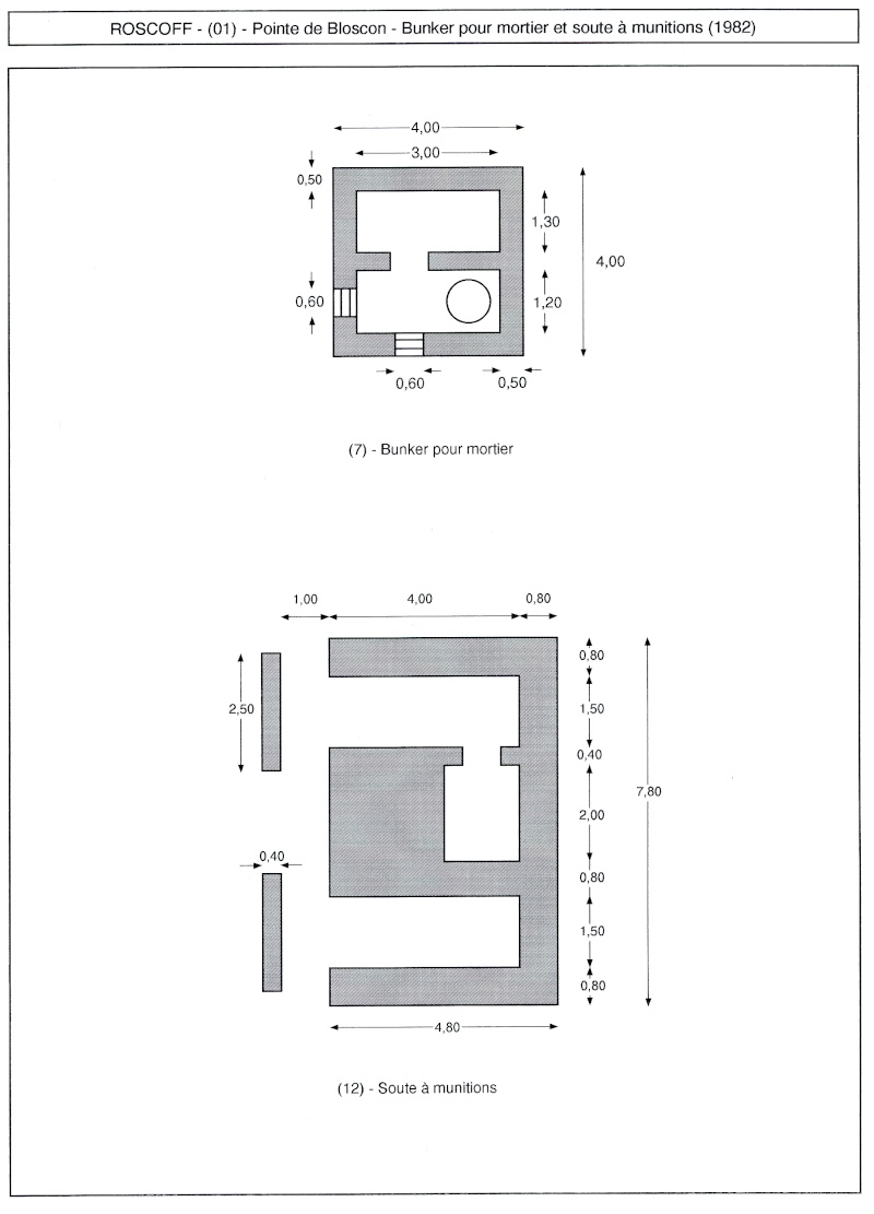 Plan d'un bunker pour mortier et d'une soute à munitions (dessin : Olivier Doher, 1982)Immatriculation