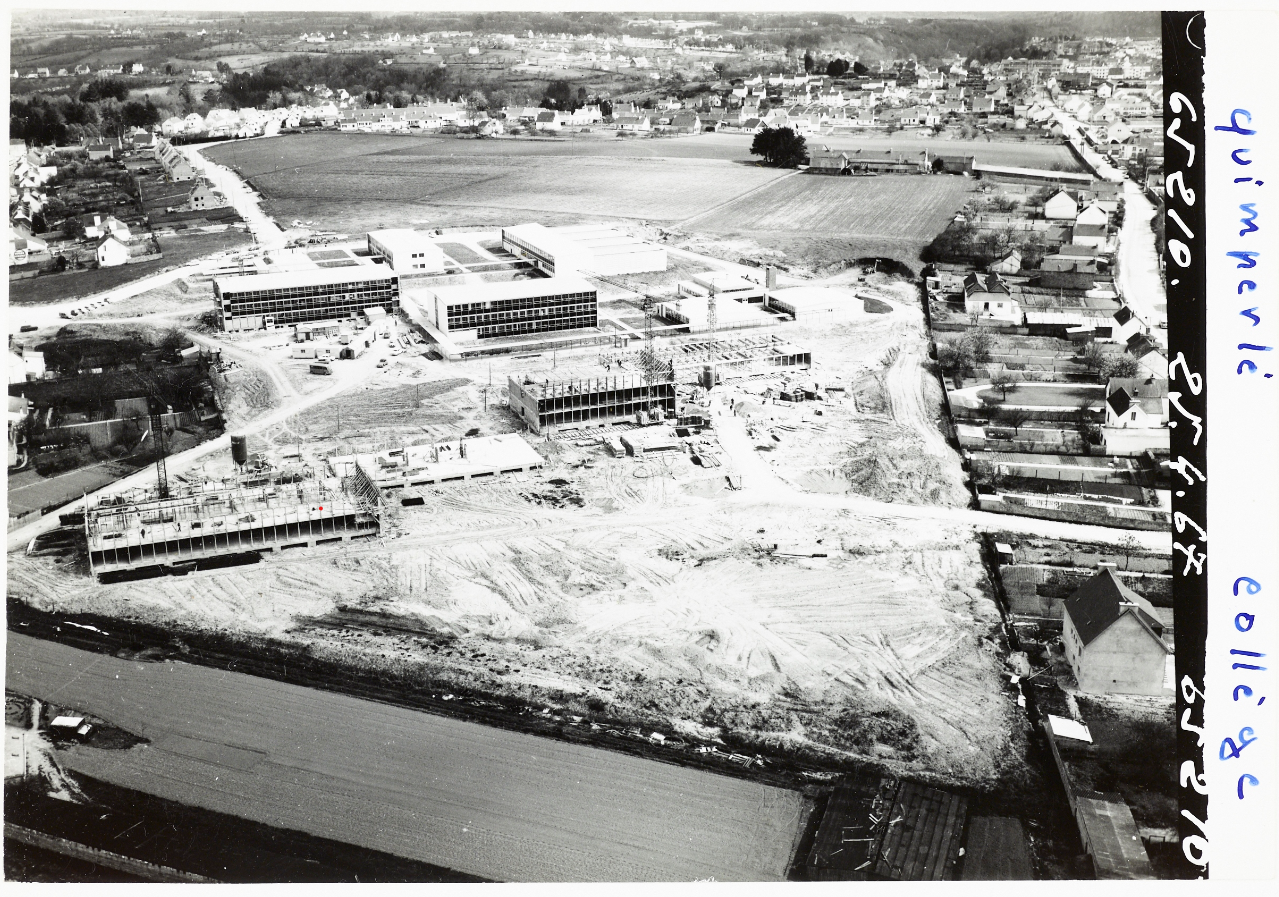 Musée de Bretagne (Rennes) : 974.0071.158.8 ; 974.0071.158.7 ; 971.0037.13054.2 ; 971.0037.11365.2. Heurtier, Vues aériennes de la cité scolaire Kerneuzec, 1967, 1969, 1971