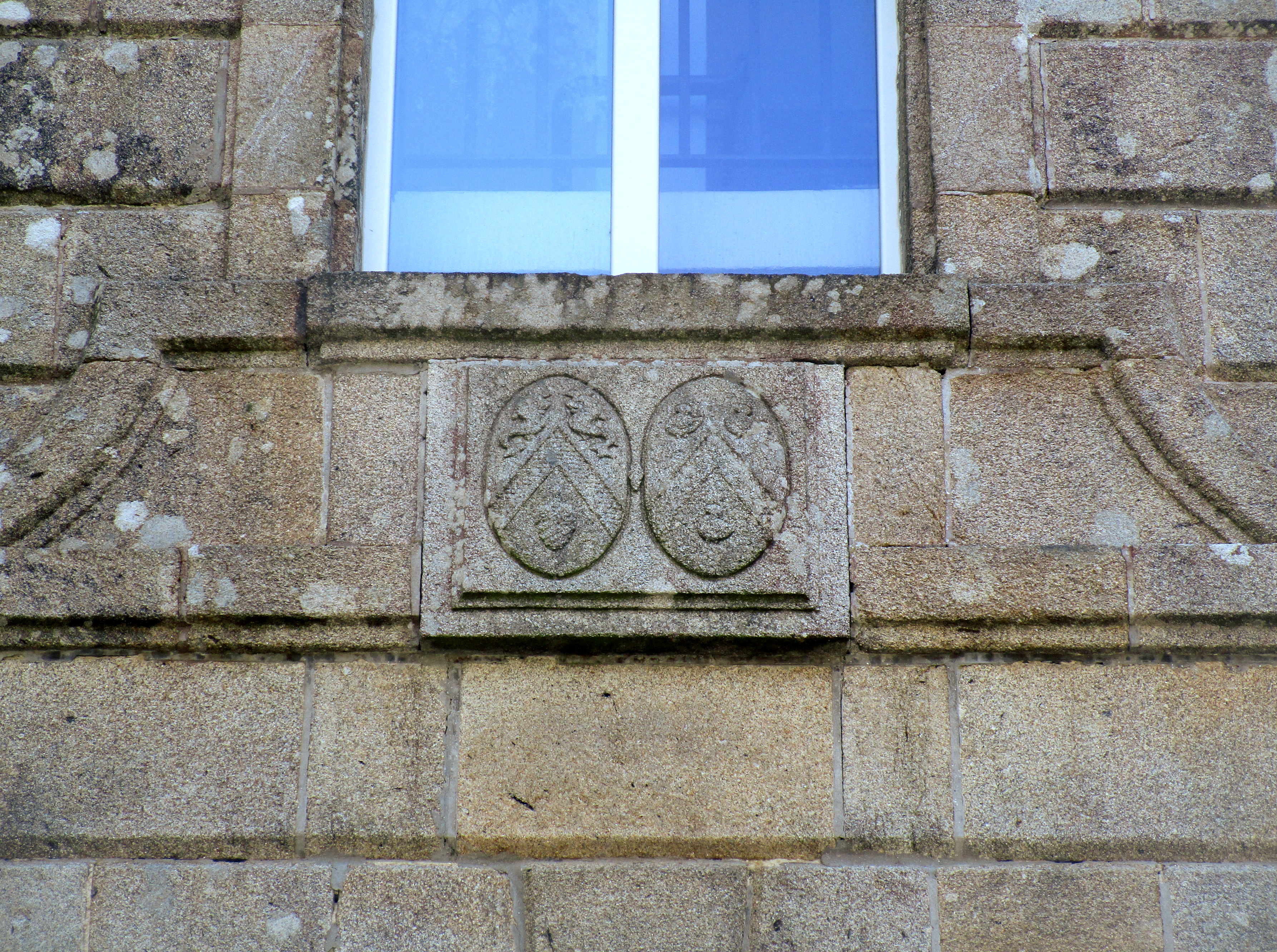 Elévation ouest, détail des blasons en alliance des familles de Lécluse et Van de Gracht d’Eeghem. (2023)Immatriculation