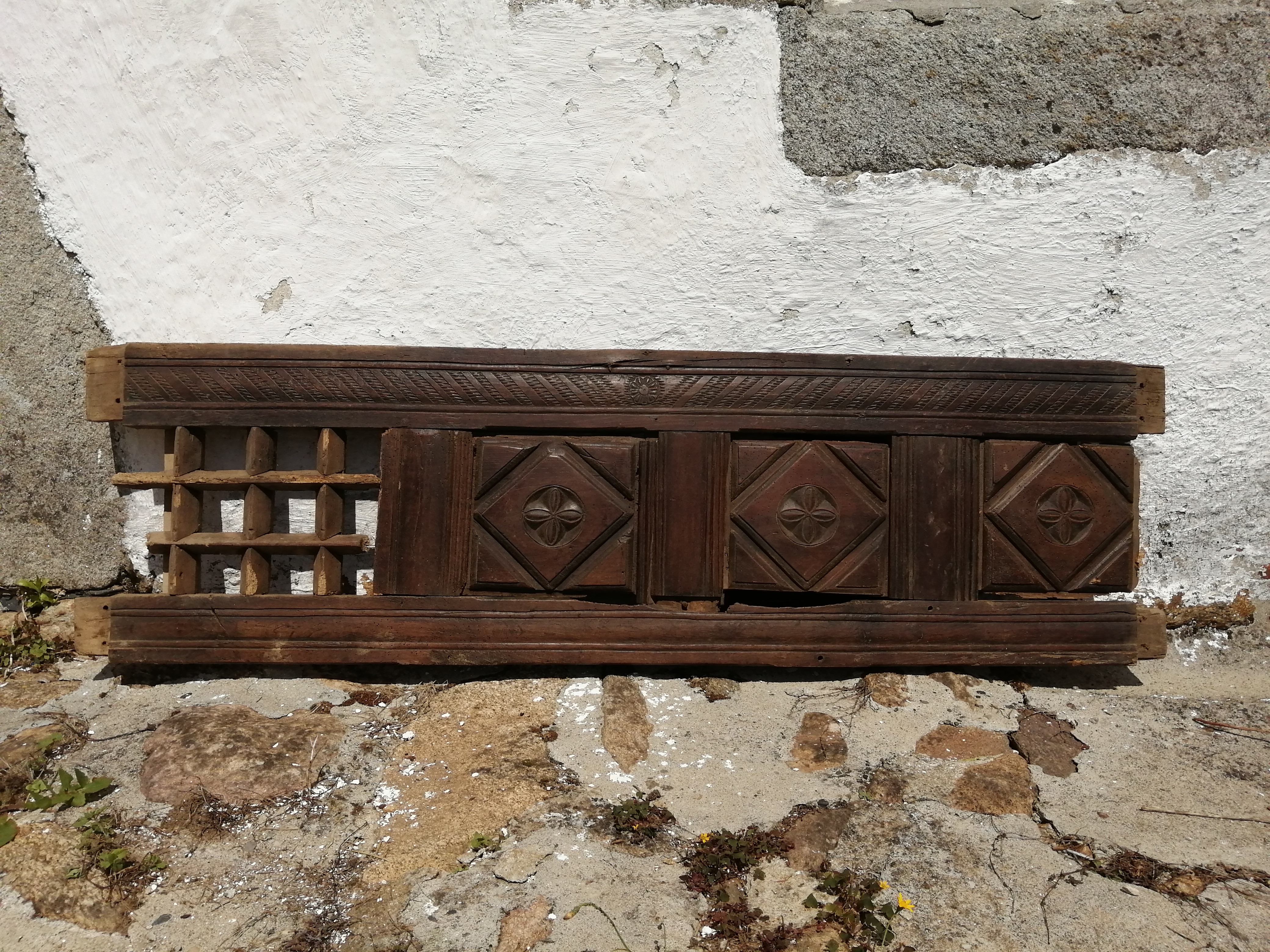 Drustuilh daté 1812, éléments. Détail de la traverse médiane avec panneau ajouré.Immatriculation