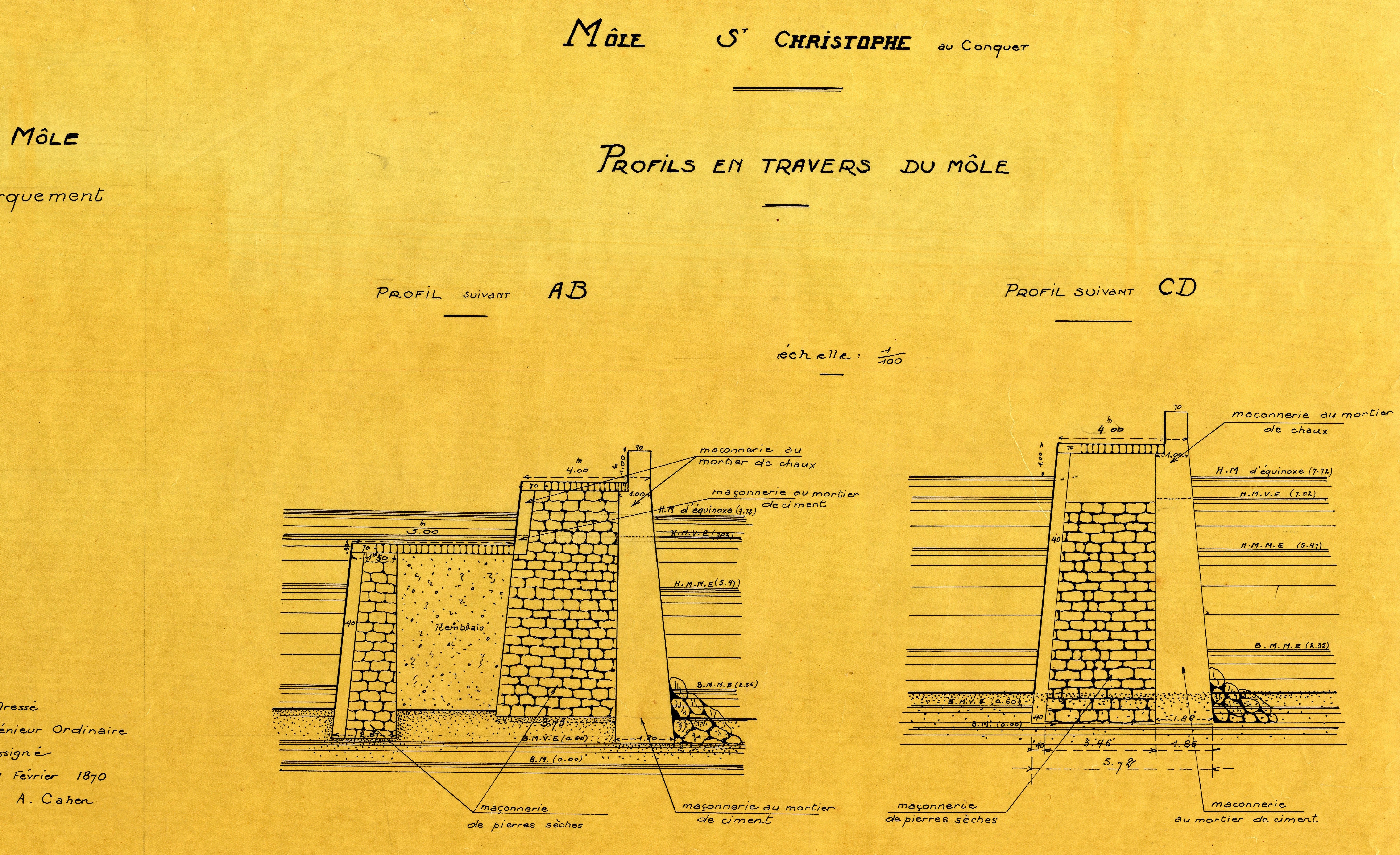 Profils de travers du môle Saint-Christophe, ingénieur A. Cahen, février 1870Immatriculation