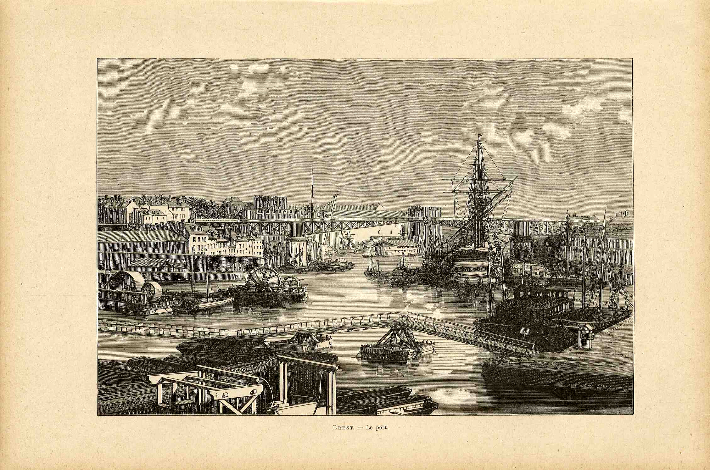 Lithographie de Blanchard, le port militaire de Brest, Penfeld en 1898Immatriculation