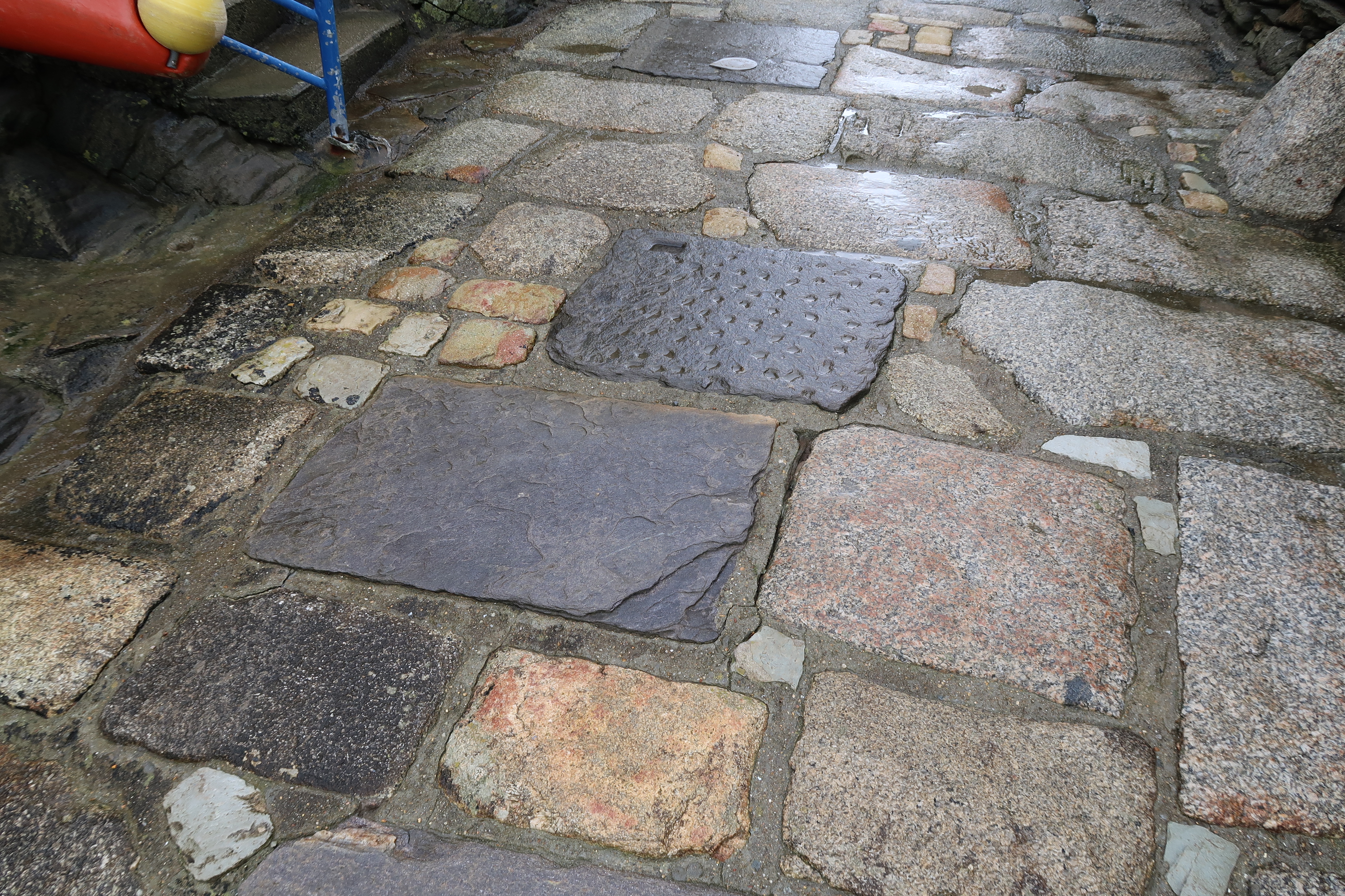 Pavage de la cale : moellons de taille différentes et origine géologique diverseImmatriculation