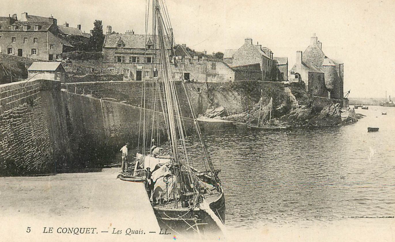 Carte postale, Le Conquet, les quais. Ed. L.L. (Léon et Lévy)Immatriculation