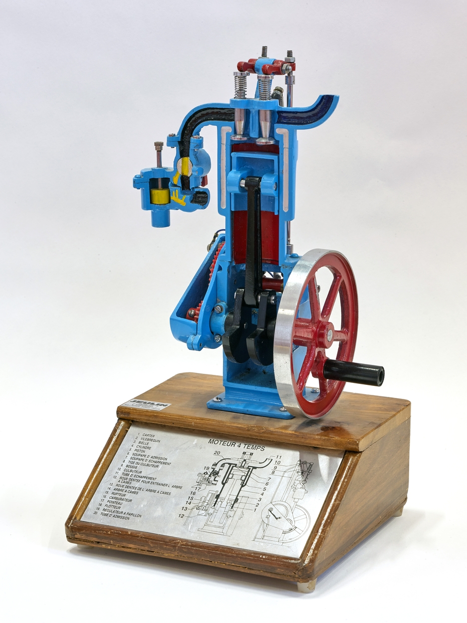Collections pédagogiques (mécanique) : coupe d'un moteur quatre temps ; établissements Jeulin.Immatriculation