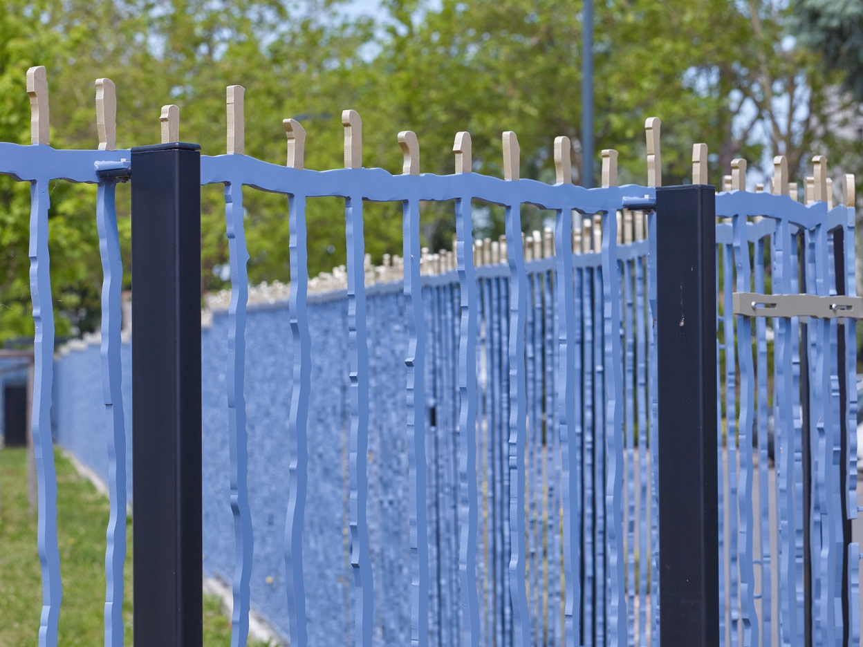 Creatura, clôture réalisée dans la commande publique artistique de la ligne B du métro. Valentin Carron, 2021. Vue de détail.Immatriculation