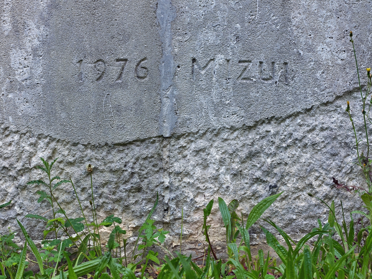 Sculpture "Coupe-Vent" de Yazuo Mizui (1976) : détail sur la signature.Immatriculation