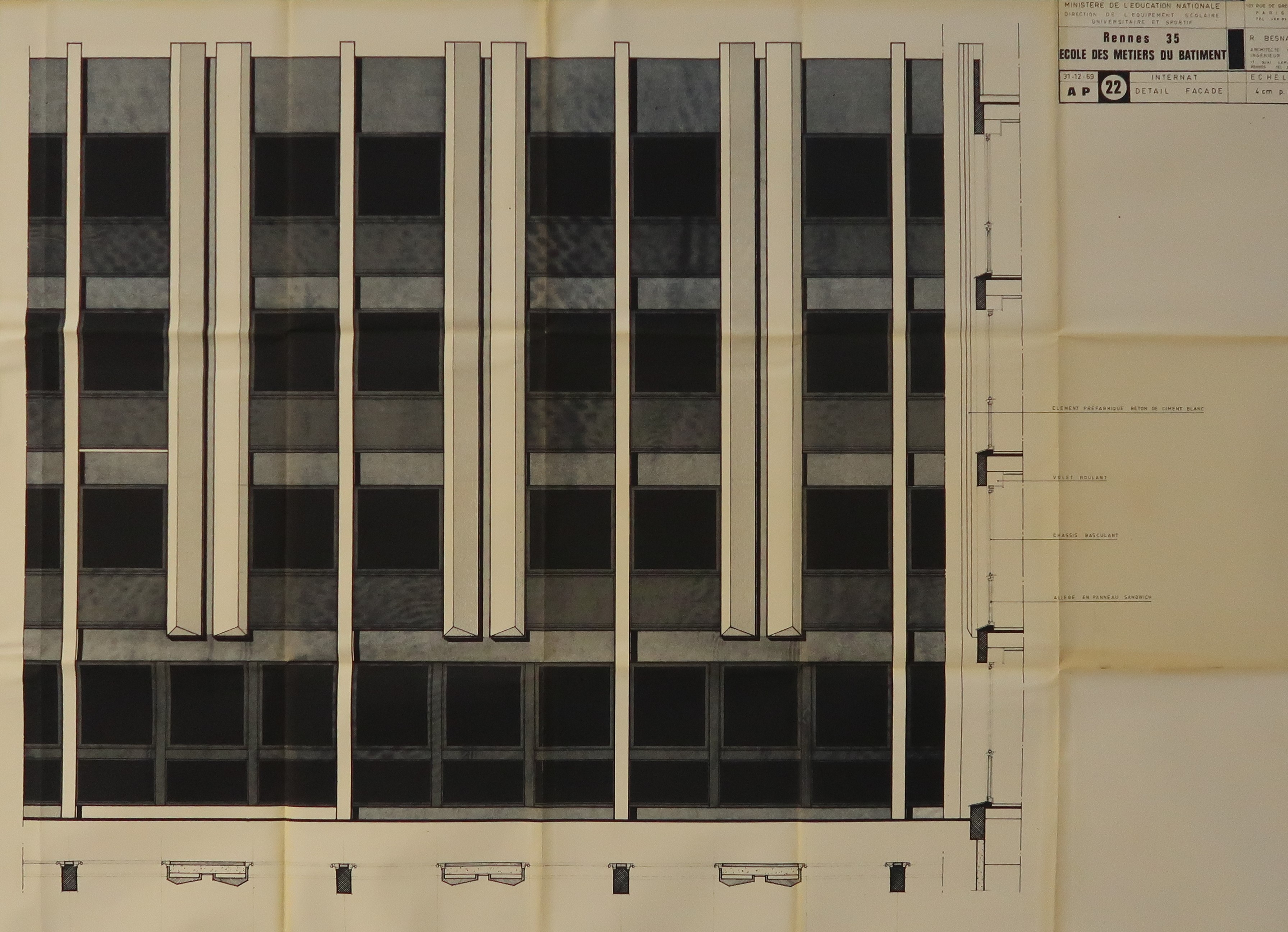Archives municipales de Rennes : 646 W 72. Besnard [Roger], Jeu de plans de l'Ecole des métiers du bâtiment, 1969.