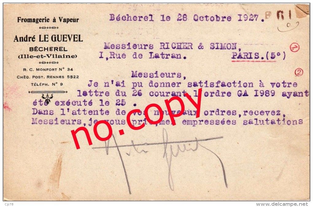 Fromagerie à vapeur : Courrier Le Guével (premier quart 20e siècle)Immatriculation