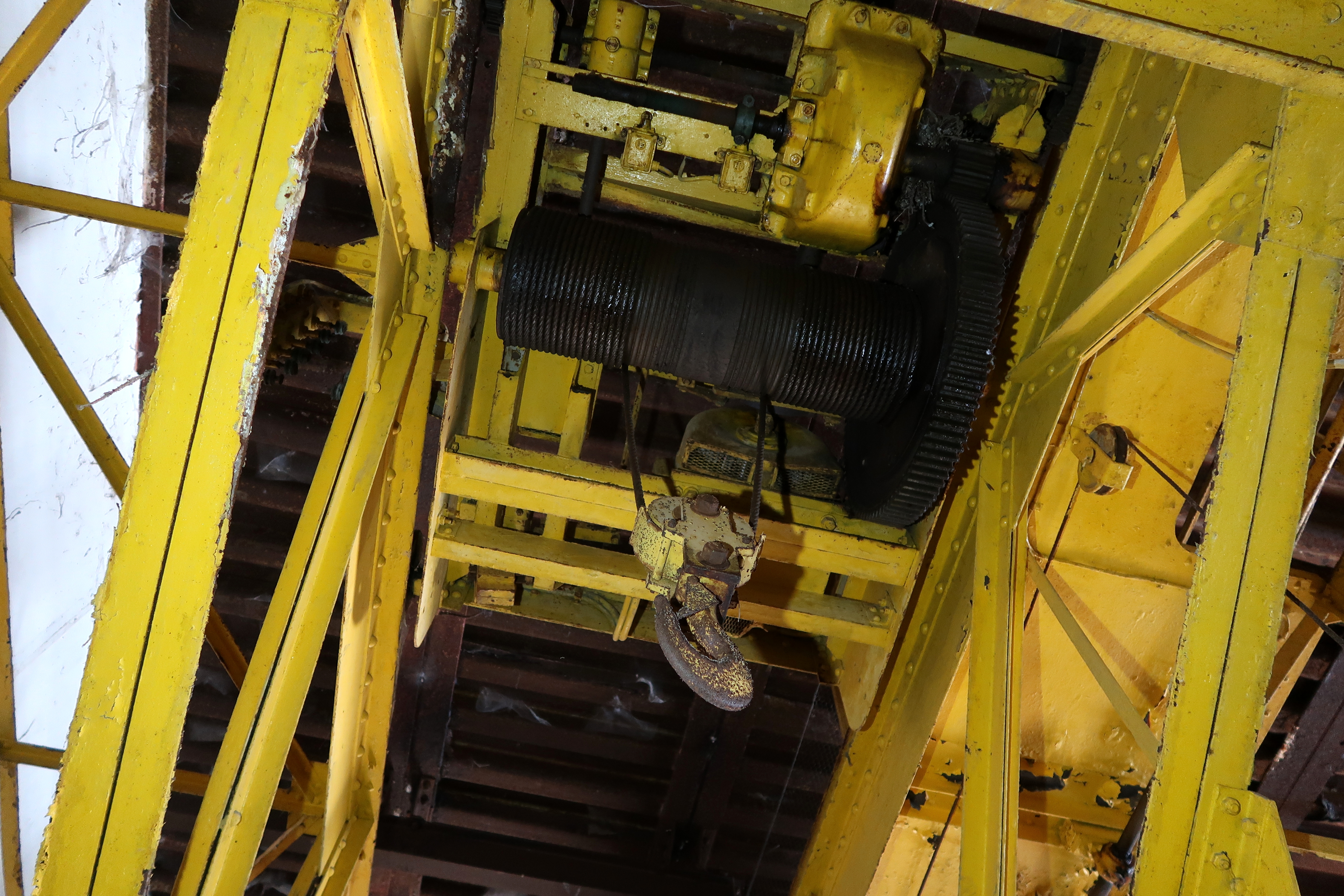 Vue du treuil électrique du pont roulant (état en 2023)Immatriculation