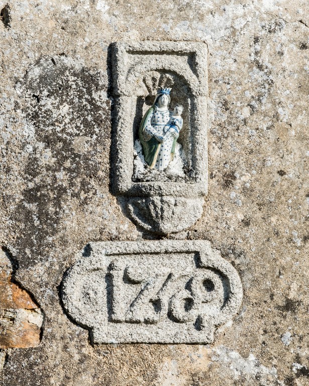 Logis 1758. Détail de la niche à Vierge et de la date 1758Immatriculation