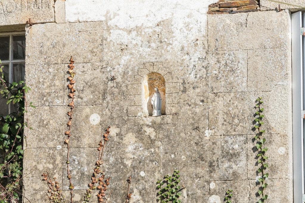 Logis 1713. Détail de la niche à Vierge et de l'enduit d'imitation fausses pierres de tailleImmatriculation