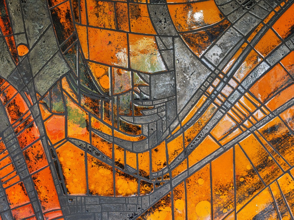André Masson et André Borderie, céramique murale, 1976 (déplacée en 2009-2010). Détail.Immatriculation