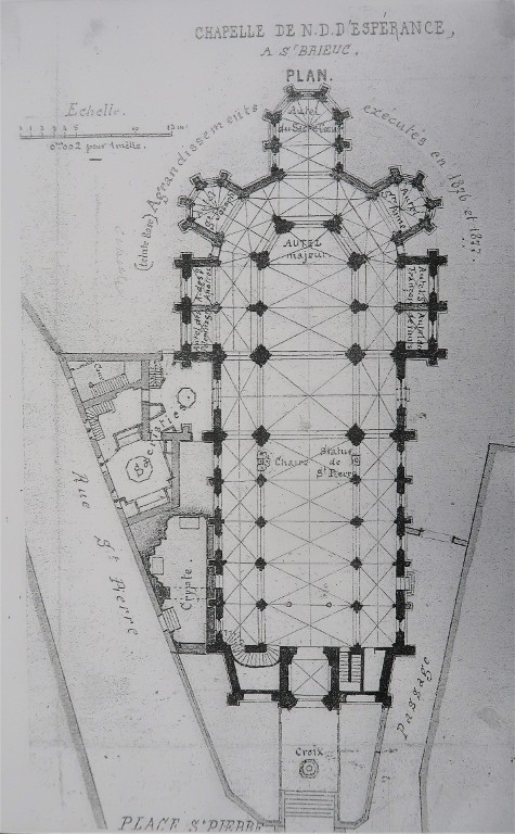 Plan de la basilique Notre-Dame-d'Espérance après 1877 (et agrandissement du chœur).