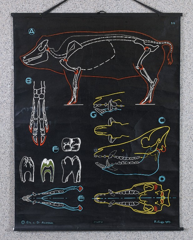 Poster pédagogique "porc", illustré par Paul Sougy, acquis en 1962 auprès de la maison Auzoux.Immatriculation