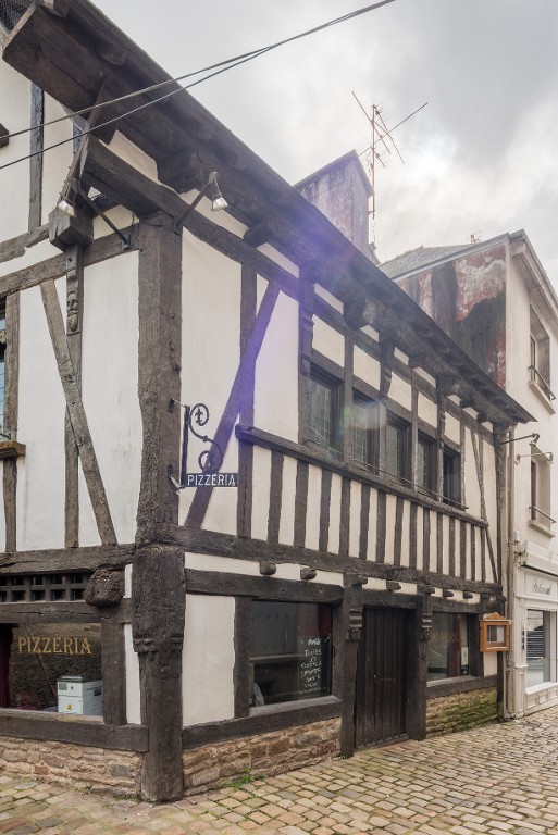 Cette maison d'angle présente plusieurs décors humains sculptés en tête des poteaux principaux et caractéristiques d'une esthétique de la Renaissance.Immatriculation