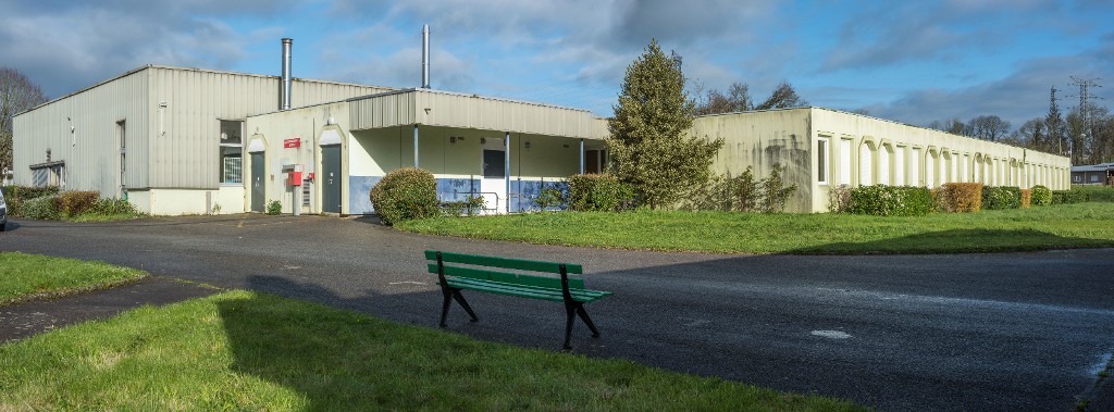Ateliers industriels : vue d'ensemble prise du sud-est. A. Letenneur, M. Bignan et J-P. Brunerie, architectes, 1986.Immatriculation