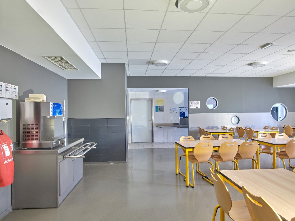 Réfectoire et self-service. Vue partielle.Immatriculation