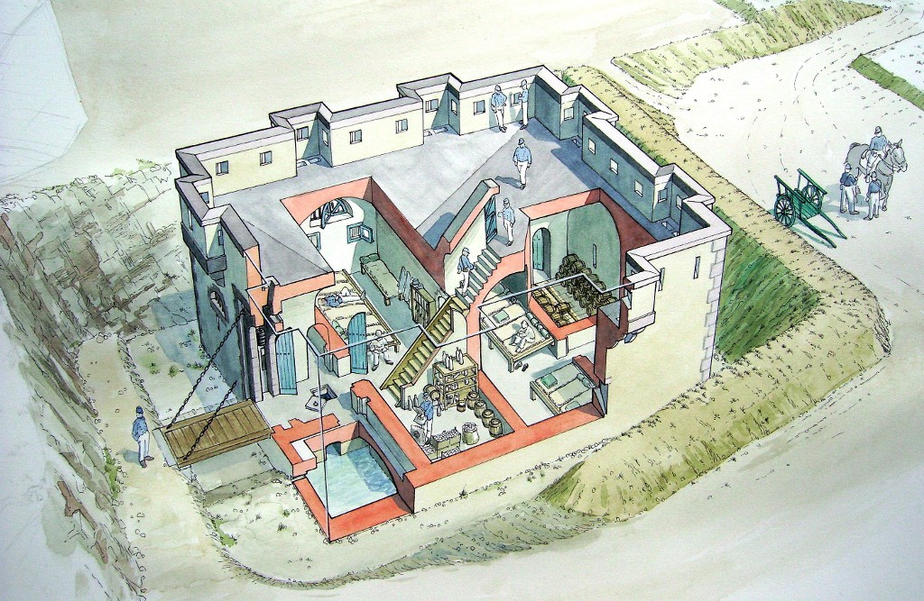 Les réduits de batterie de côte type 1846 : corps de garde crénelés et tours crénelées,