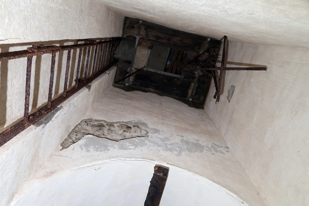 Vue du puits du monte-charge avec son plancher. Il est doublé d'une échelleImmatriculation