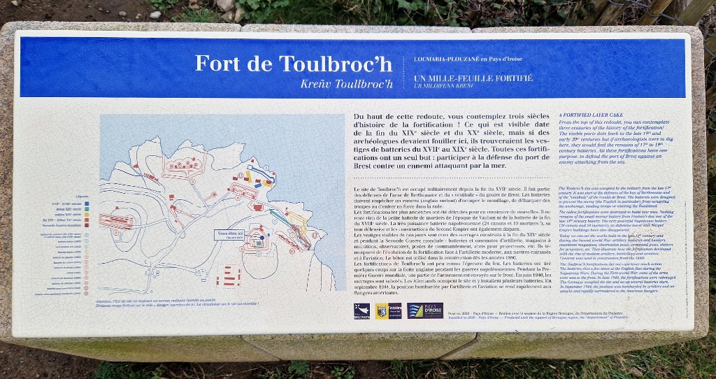 Vue de la signalétique en place : Fort de Toulbroc'h. Un mille-feuille fortifiéImmatriculation