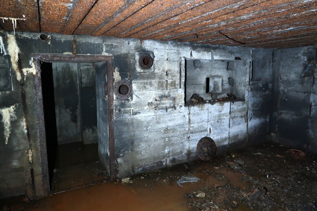 Vue intérieure : unique entrée des salles de garde nord et sud. A gauche, la salle de garde sud avec son créneau de tirImmatriculation