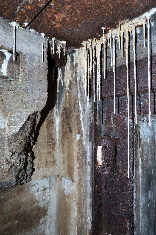 Vue intérieure : détail du puits d'antenne dans le couloir d'entrée nord. A droite, l'huisserie de la porte blindéeImmatriculation