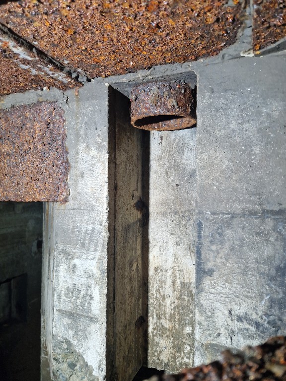 Vue de l'entrée nord : détail du passage d'antenne dans la dalle de couvertureImmatriculation