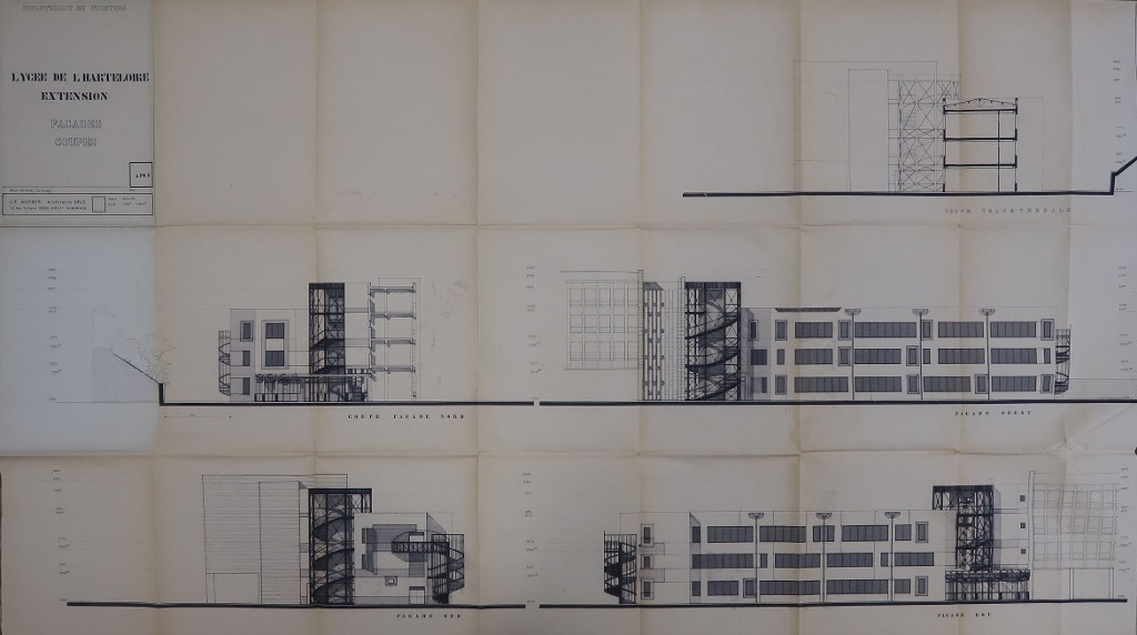 Extention : Elévations. Jean-Pierre Huéber, architecte, 1988.Immatriculation