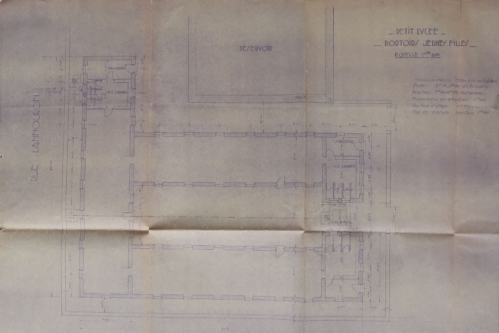 Plan des dortoirs de jeunes filles du "Petit Lycée". Sans nom ni date.Immatriculation