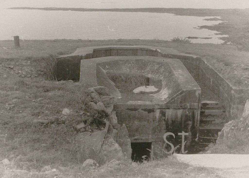 Photographie d'un bunker - abri de type 600 à l'entrée de la rivière de Merrien, extrait du rapport Pinczon du Sel sur les installations du Mur de l'Atlantique, 1946-1949Immatriculation