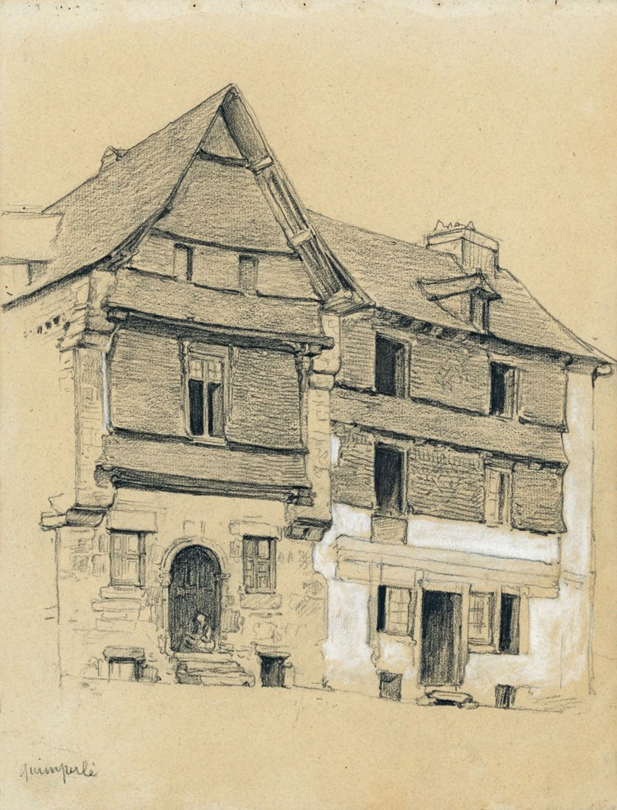 Maisons à Quimperlé, dessin de Jean-Baptiste Trayer (1824-1909). Musée des Beaux-arts de Quimper