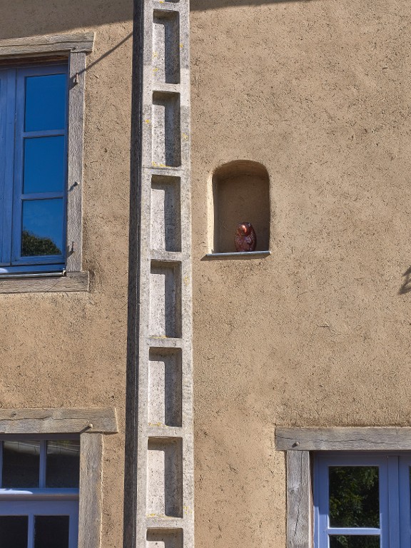 Elévation antérieure, détail de l'ancienne niche en partie haute de la façade.Immatriculation
