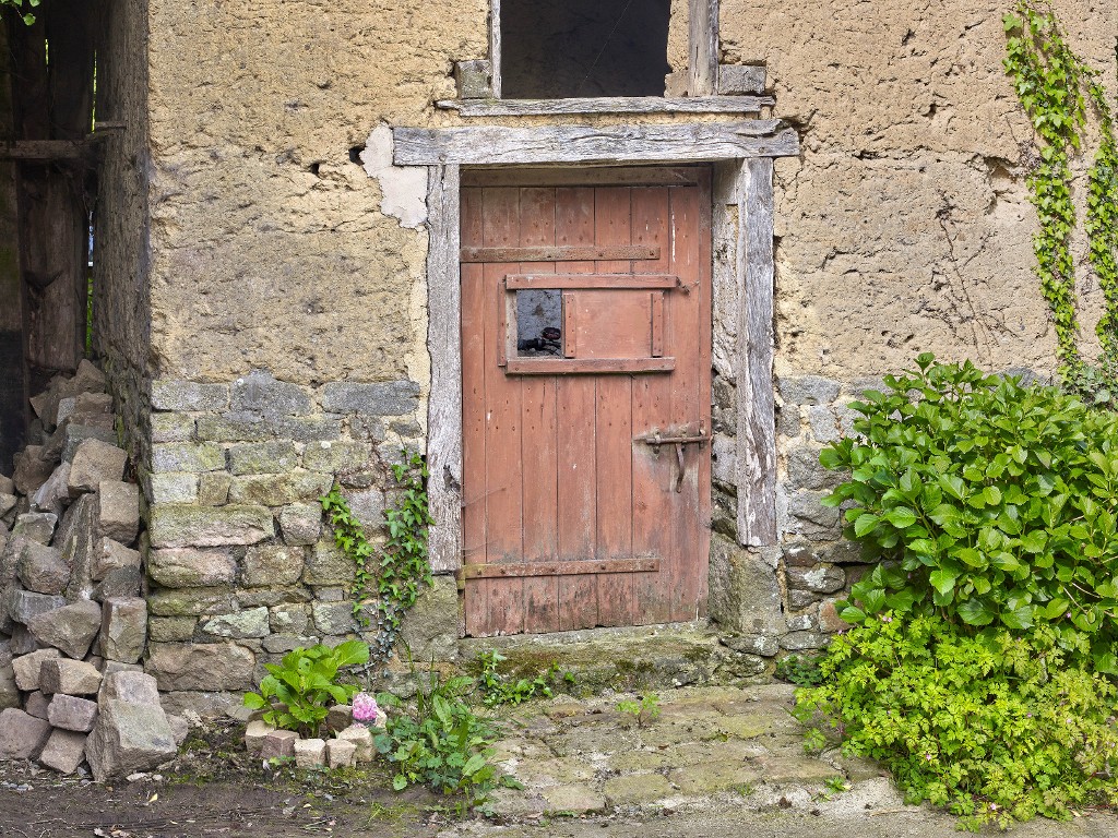 Ancienne porcherie, détail de l'ouverture.Immatriculation