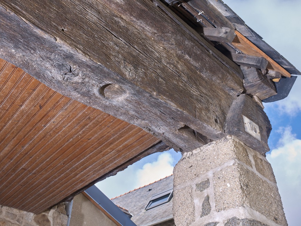 Les mêmes traces et assemblages orphelins s'observent à chaque extrémité de la sablière du porche.Immatriculation