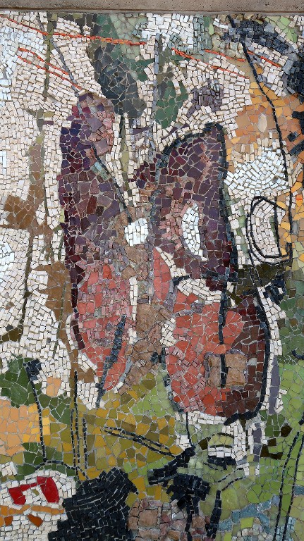 Mosaïque monumentale de François Baron-Renouard, 1976 : détail.Immatriculation