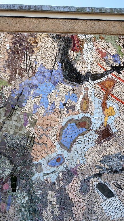 Mosaïque monumentale de François Baron-Renouard, 1976 : détail.Immatriculation