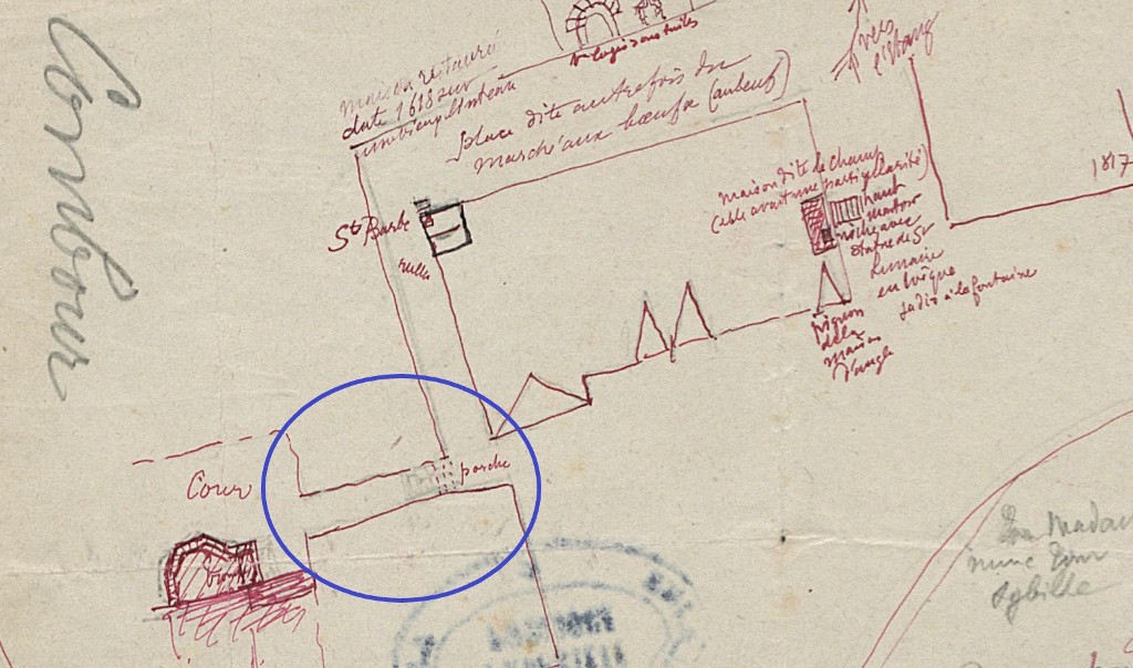 Mention du porche sur un plan de Joseph des Bouillons à la fin du 19e siècle
