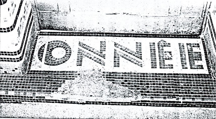 Les mosaïques Odorico, détail du paillasson, cliché de H.Guéné vers 1983Immatriculation