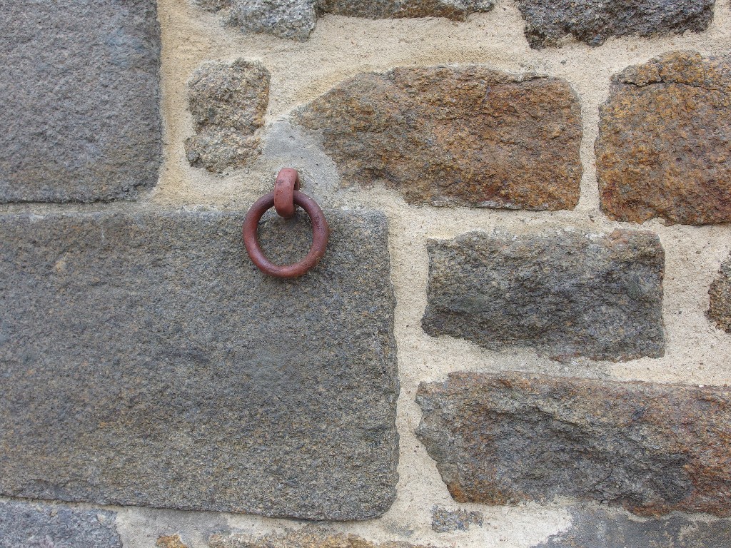 Détail d'attache pour animaux dans la maçonnerie près de la fontaine, rue de la Barrière (Hédé-Bazouges)Immatriculation
