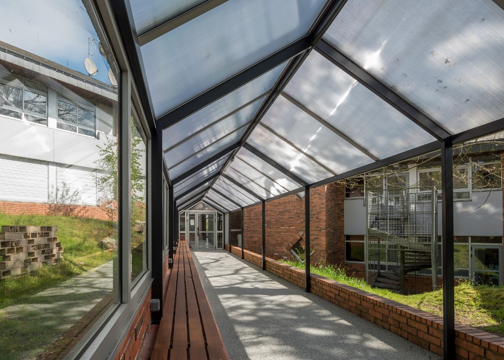 Galerie couverte entre le hall-entrée et l'aile blanche (externat sciences).Immatriculation
