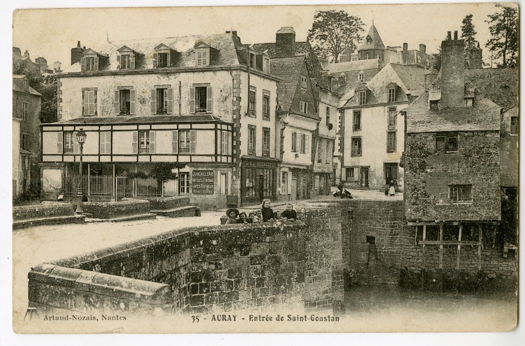 Square Castelbar, 54 rue du Château : maison construite sur pilotis et maisons en pan de bois en arrière-plan. Celle située le plus à l'est a été détruite par un incendie en 1925.Immatriculation