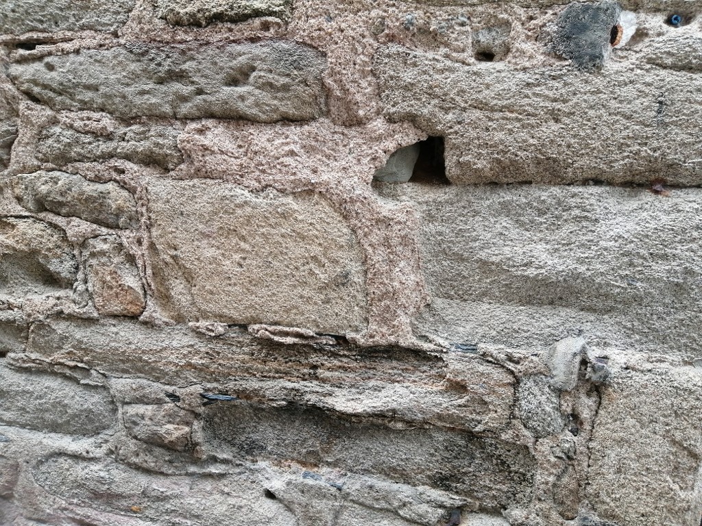Détail des pierres et ardoises utilisées dans le mur sise rue du Petit PortImmatriculation