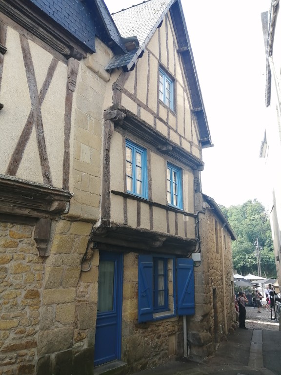 Façade à pignon sur rue en encorbellement (état en 2024).Immatriculation